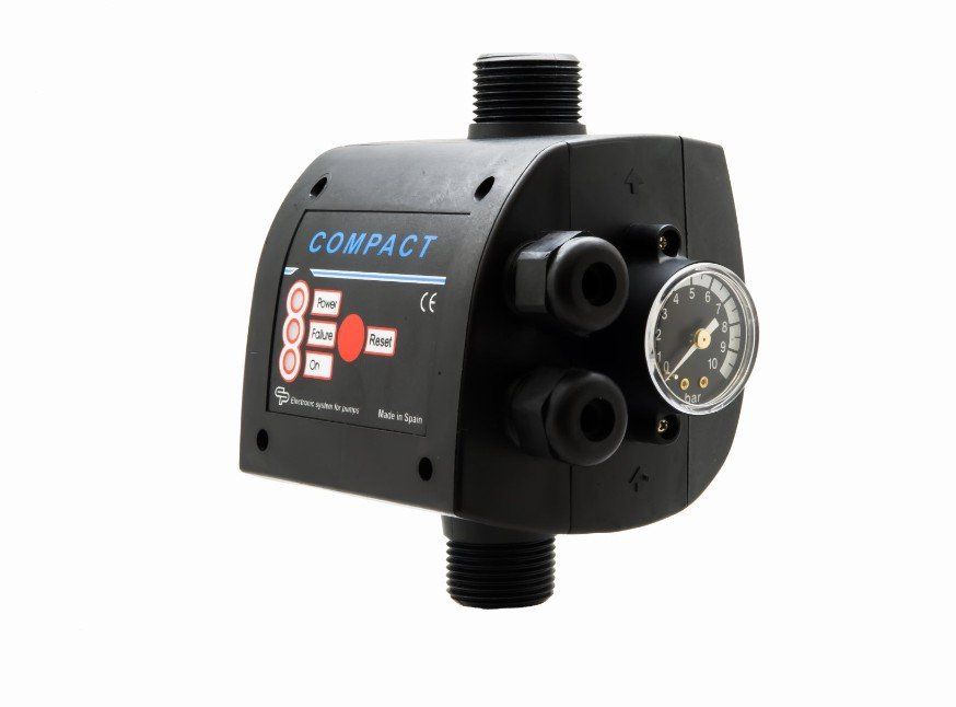 Controllore elettronico presso-flussostatico , che è dotato di sensori interni di pressione e flusso ed di una piccola membrana per l'accumolo di acqua . Riarmo automatico . Possibilità di regolazione di partenza