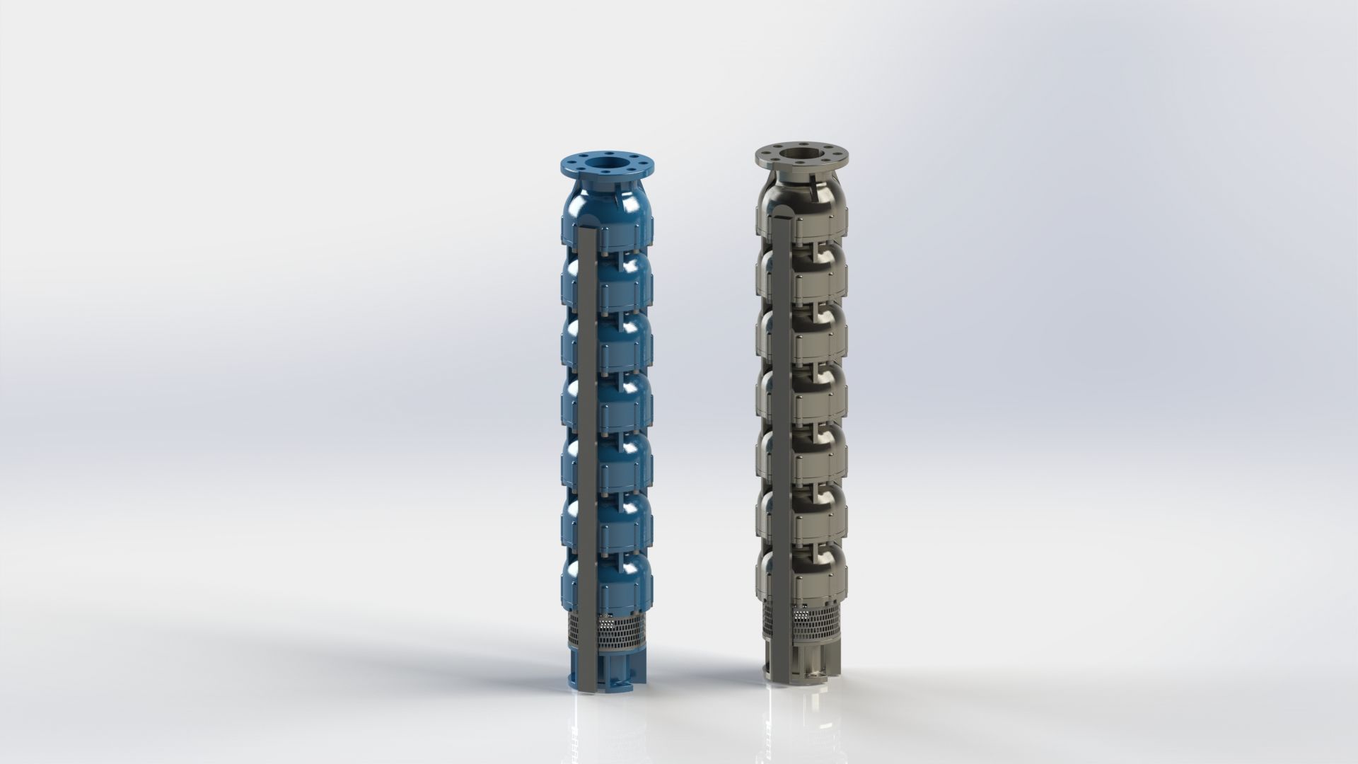 Sono 4 tipi di giranti, con solo 2 tipi di diffusore. Ciò permette una facile gestione delle pompe smontate e dei ricambi. Hanno inoltre la peculiarità di avere l’albero guida di tipo esagonale, per una facile manutenzione.